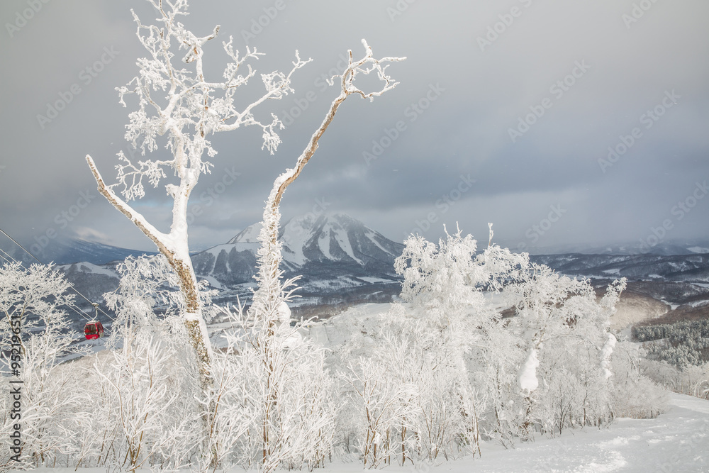 Snow covered rime trees, Rusutsu, Hokkaido, Japan