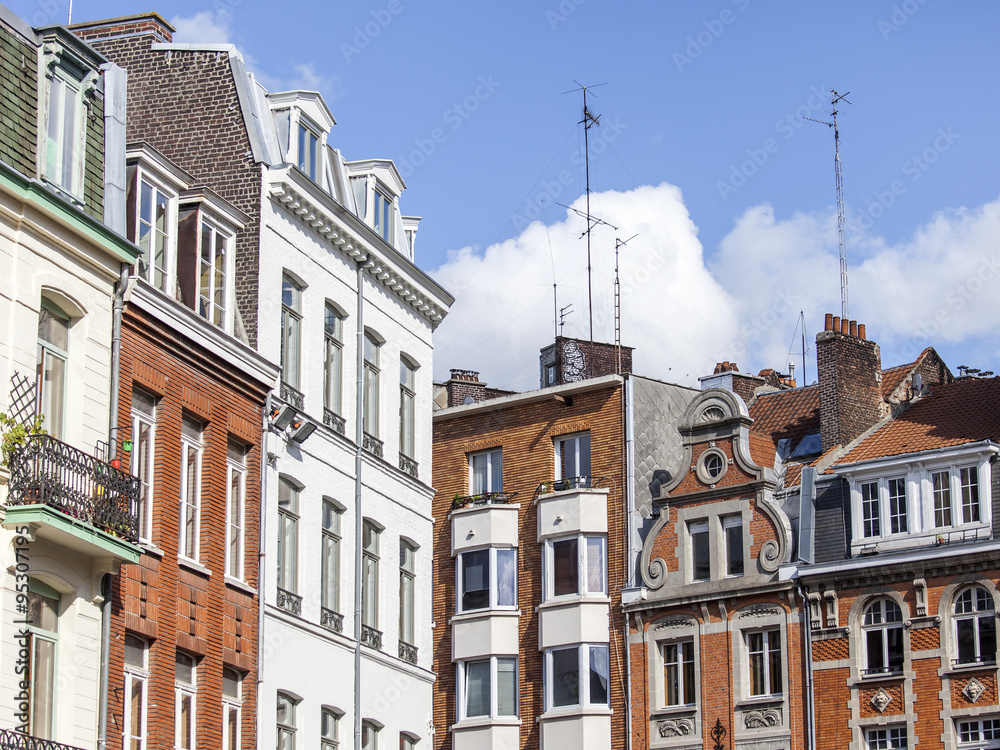 LILLE, FRANCE, on AUGUST 28, 2015. Architectural details of typical buildings in historical part of the city
