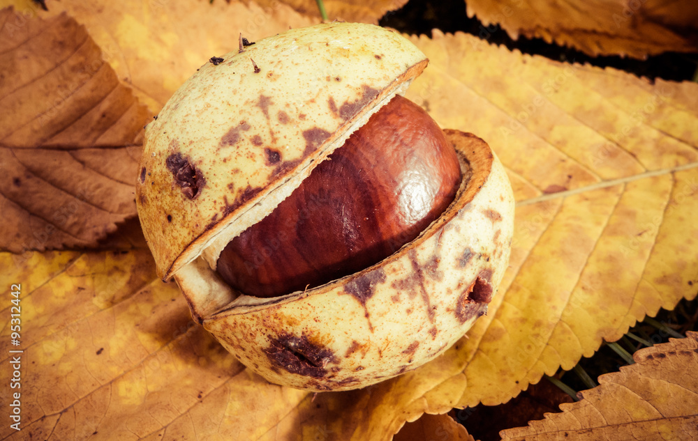 Chestnut and autumn leaf