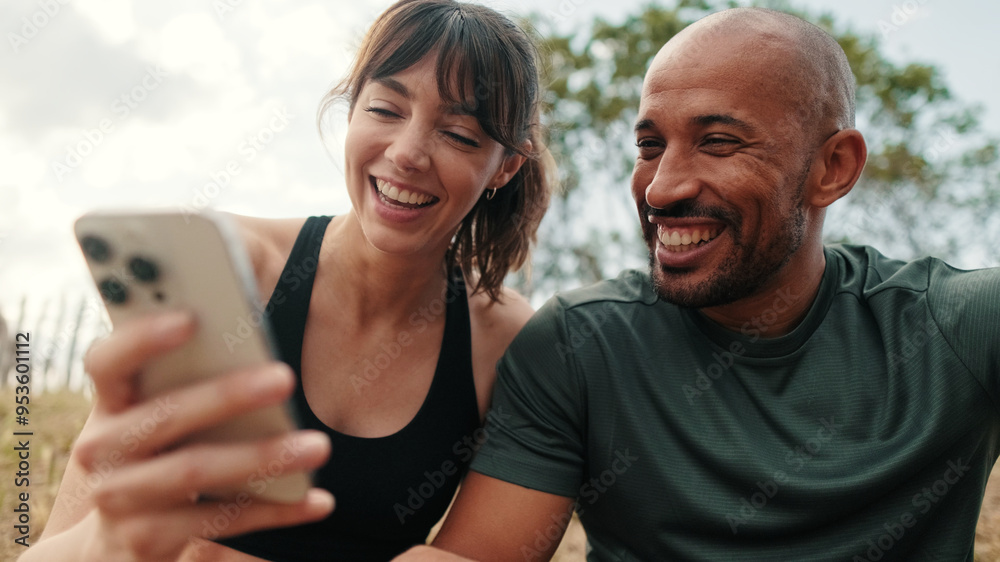 A man and a woman stare at a phone screen, cuddle and discuss social media content, scroll through a newsfeed, laugh and chat. Relationships and modern technologies