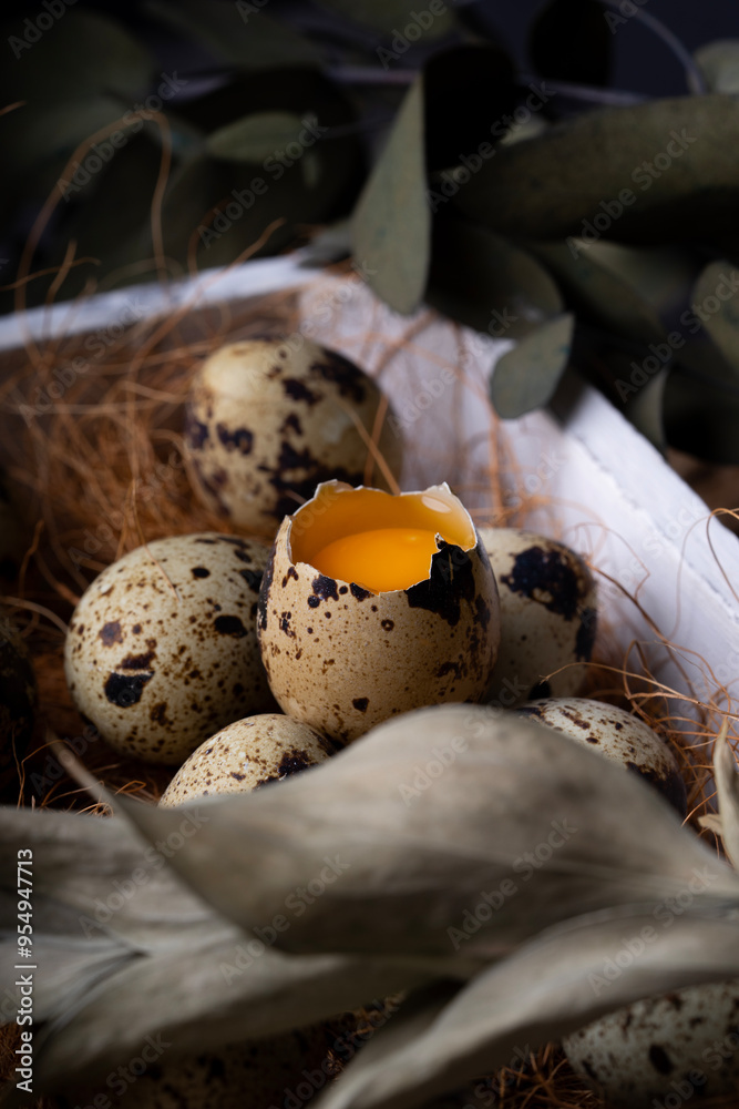 Huevos de codorniz toma horizontal toma vertical fondo rústico nido madera primer plano para restaurante comida chef