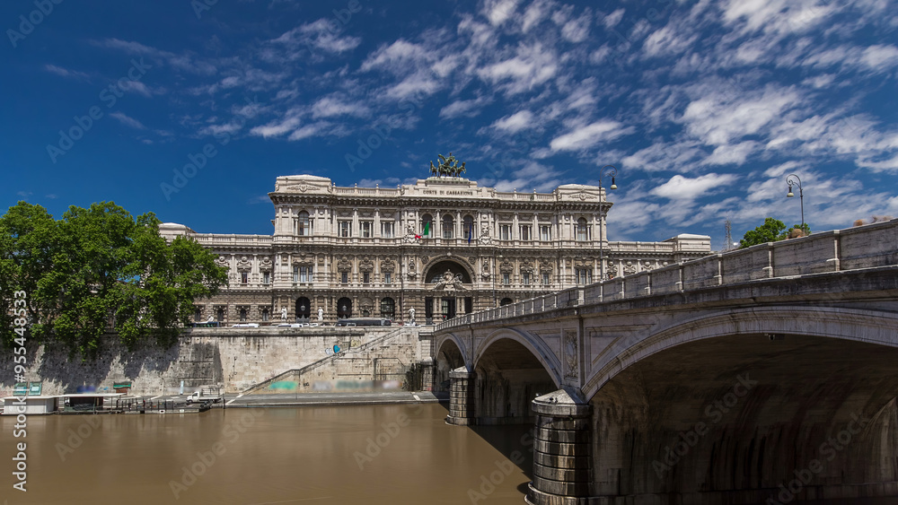 Palace of Justice timelapse hyperlapse - courthouse building with Ponte Sant' Umberto bridge. Rome, Italy.