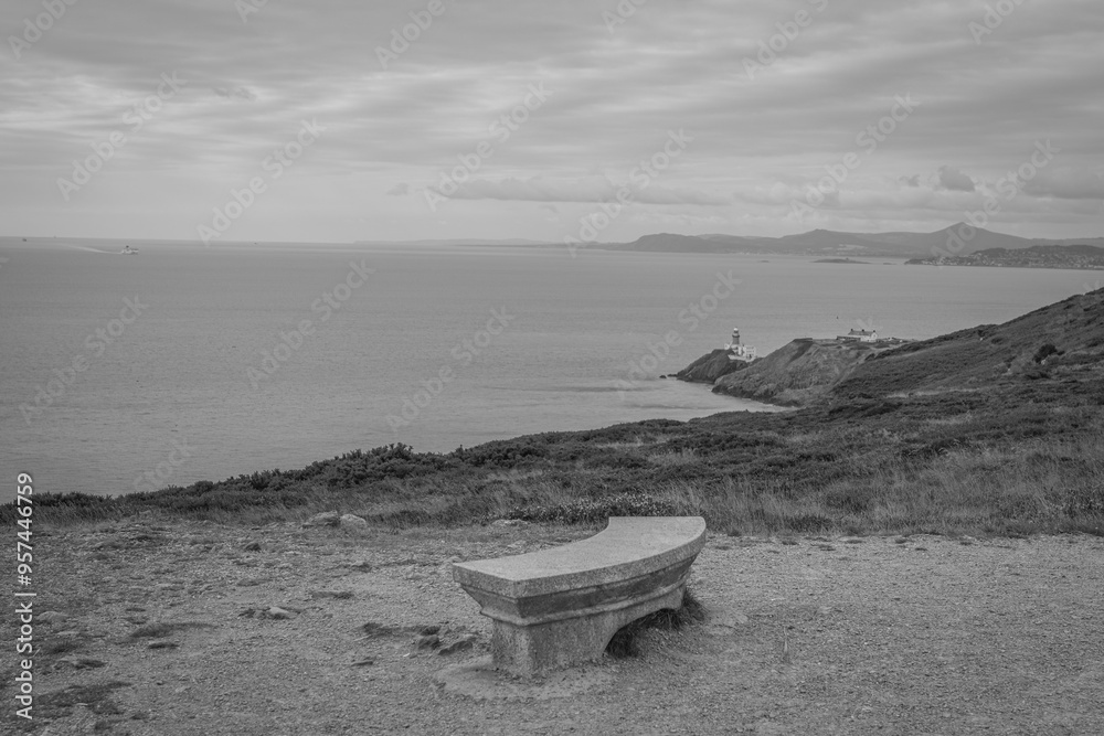 Howth, Ireland - June 18 2024 "Howth Cliff walk trail during the cloudy morning"