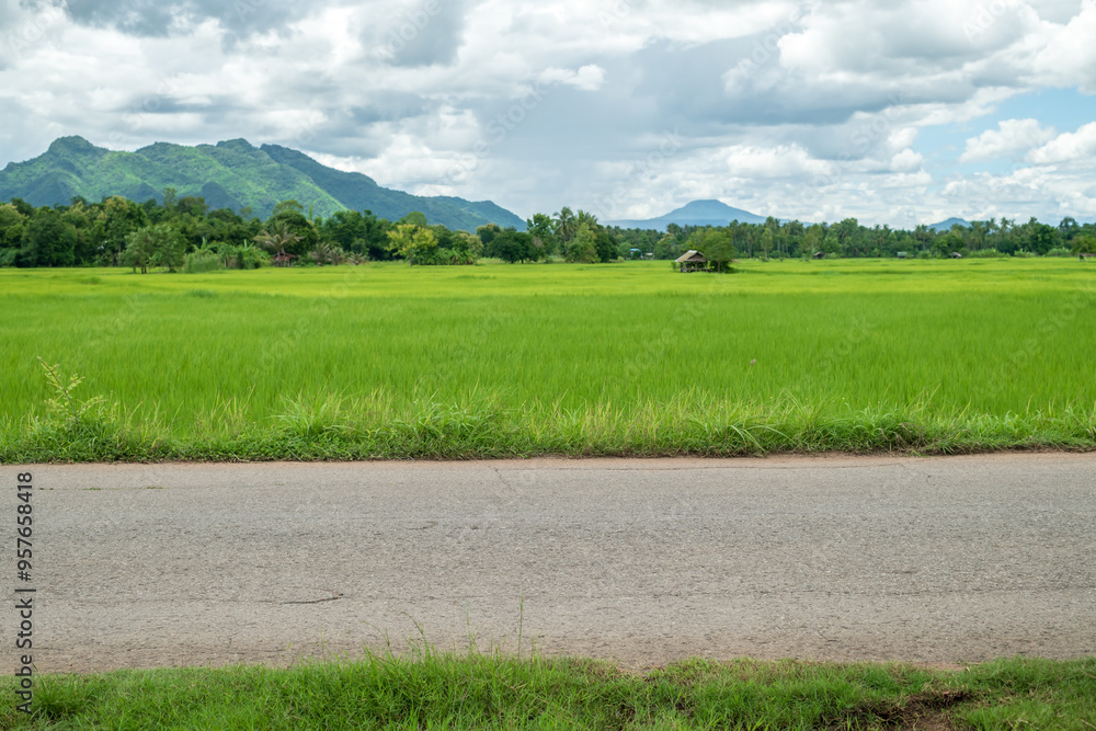 Asphalt road side view and landscape countryside.