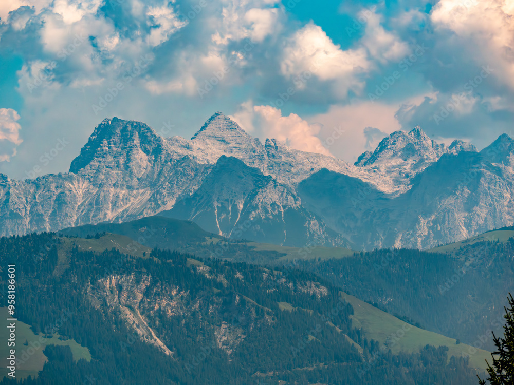 Idyllisches Bergpanorama mit blauem Himmel und Blick auf die Salzburger Alpen