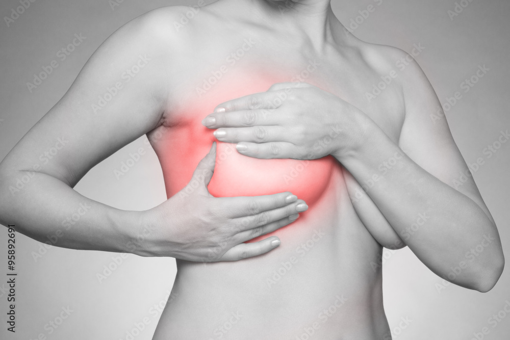 Brustschmerzen - Schwarzweiß mit roter Markierung