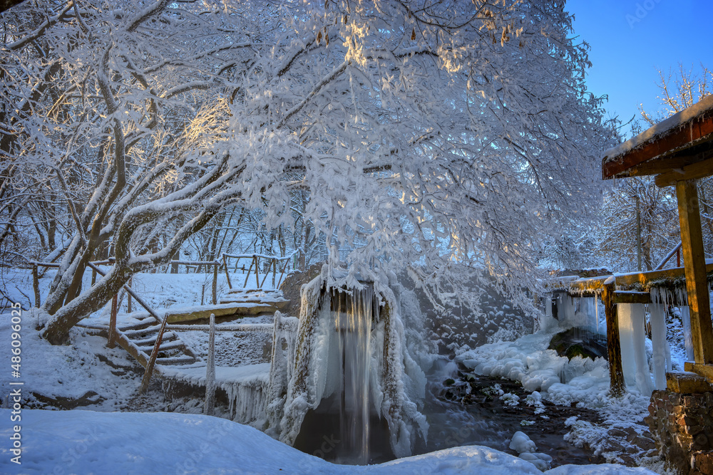 Prostate cancer awareness. Doctor holding light blue ribbon as symbol of support on color background, selective focus