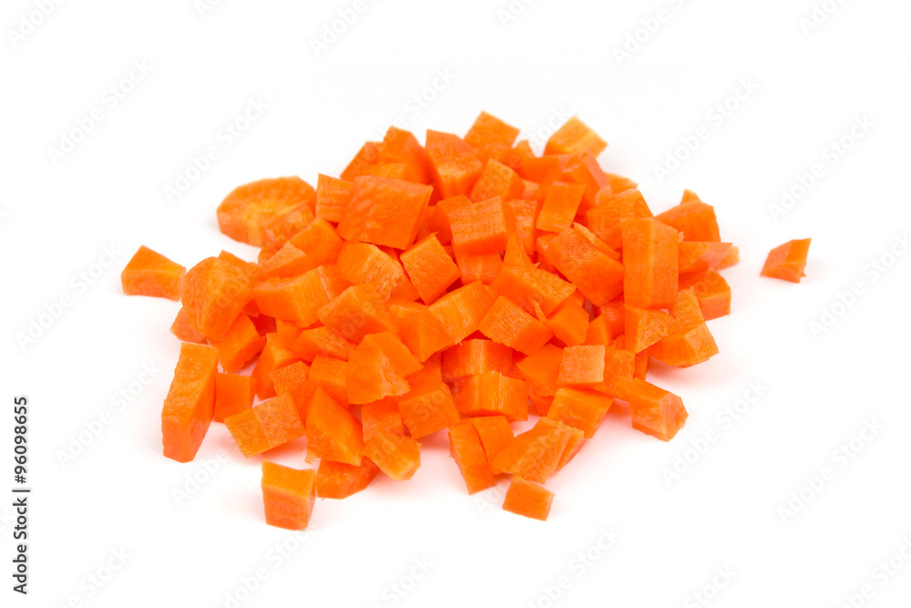 Karotten gewürfelt auf weißem Hintergrund