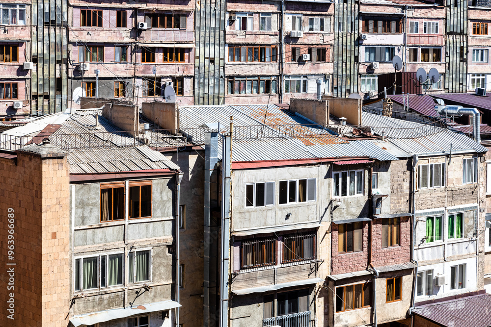 facade of old apartment houses in Yerevan city