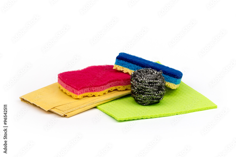 Reinigungszubehör auf weißem Hintergrund