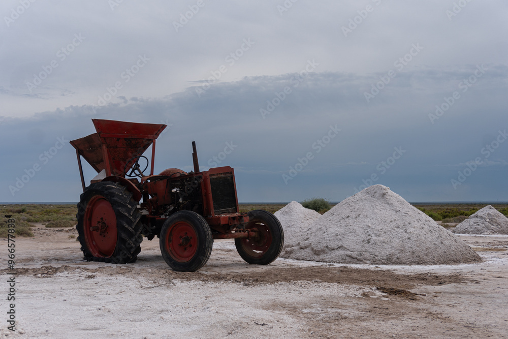 Antigüo tractor abandonado en Salinas Grandes, San José de las Salinas, Córdoba, Argentina
