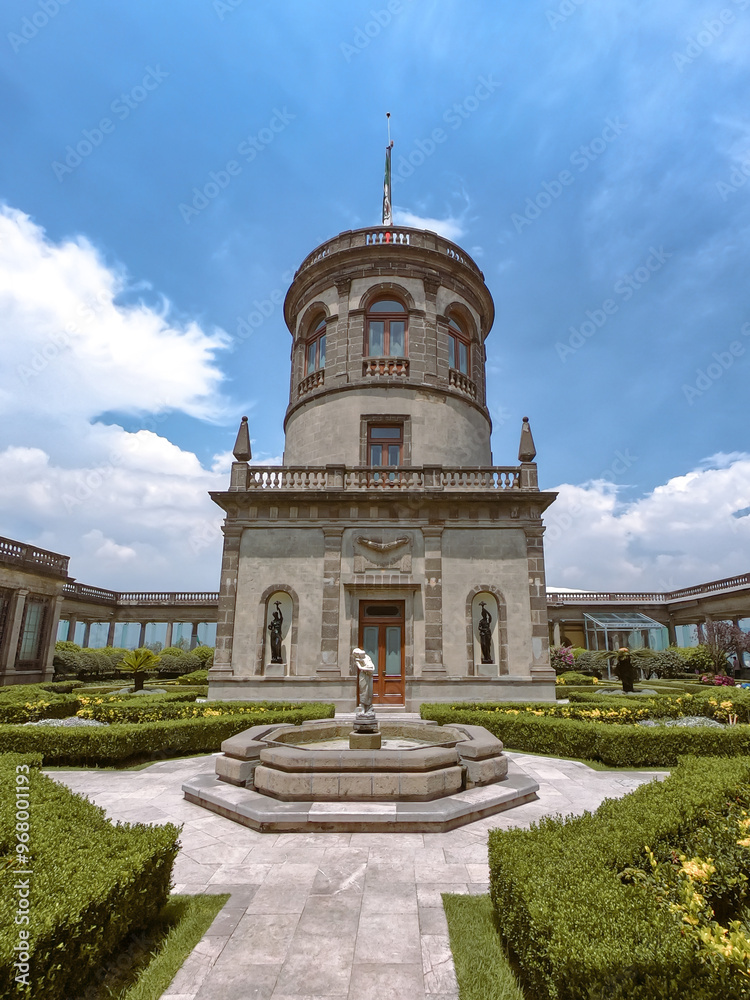 Central Garden of Chapultepec Castle Under a Clear Blue Sky in Mexico City