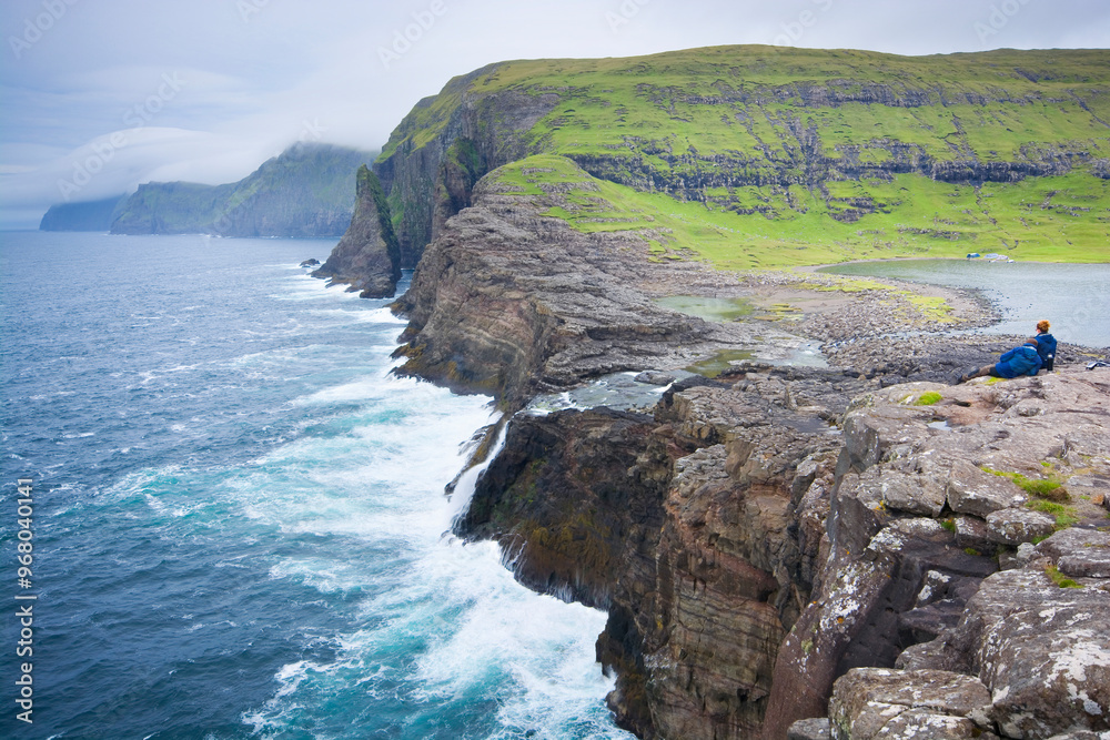 Bøsdalafossur waterfall in the Faroe Islands that flows from Leitisvatn lake into the Atlantic Ocean. It has a height of 30 meters
