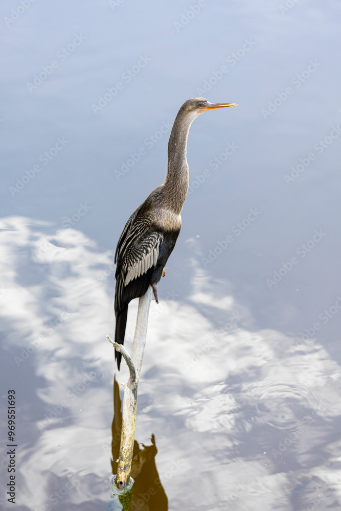 Anhinga, Anhinga anhinga, perched on a branch over water in South Carolina, USA.