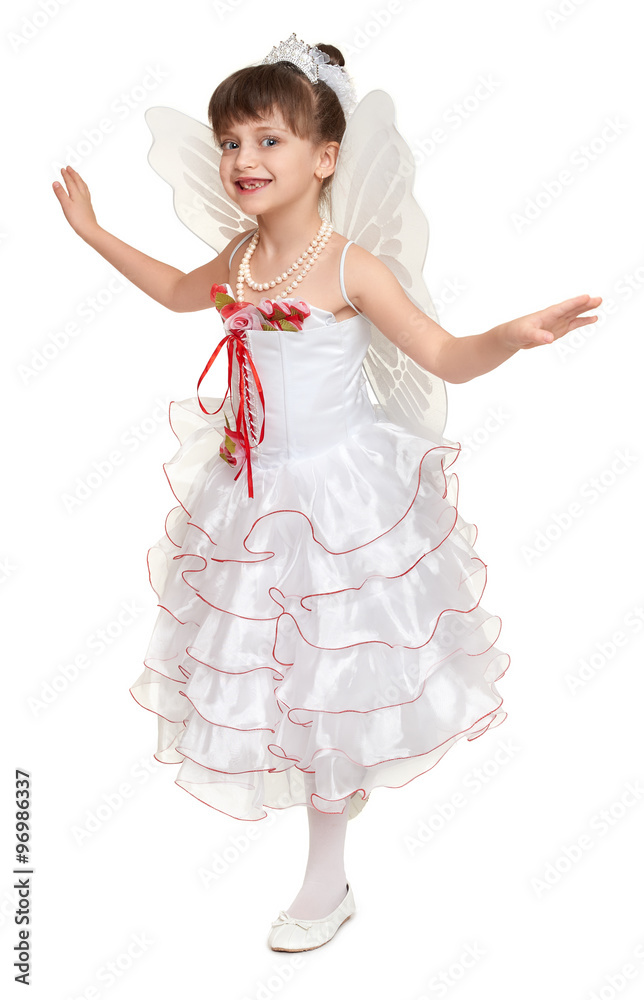 tooth fairy girl dressed in white with wings
