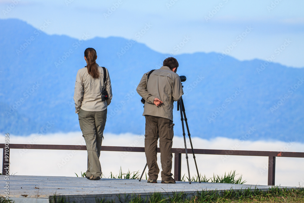 Birdwatching monocular or spotting scope on a tripod