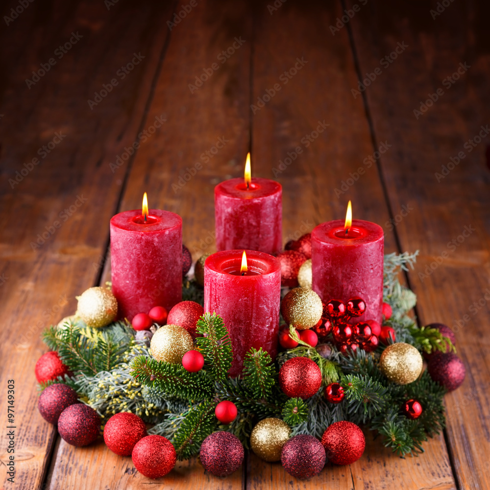 Beautiful classic advent wreath on rustic wooden table - Christmas background -- 4. Advent