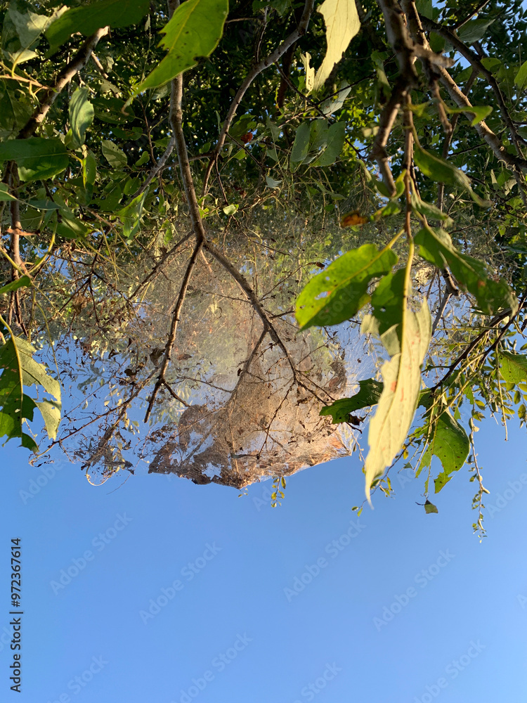 Hyphantria cunea or fall web worms on a tree in early autumn