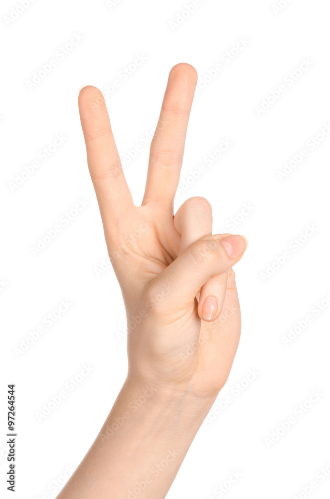 Beauty and Health theme: beautiful elegant female hand show gesture on an isolated white background in studio