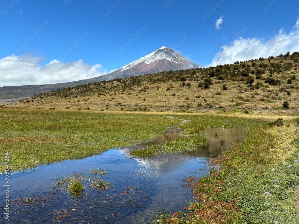 Cotopaxi volcano seen from Limpiopungo lake, Latin America, Ecuador