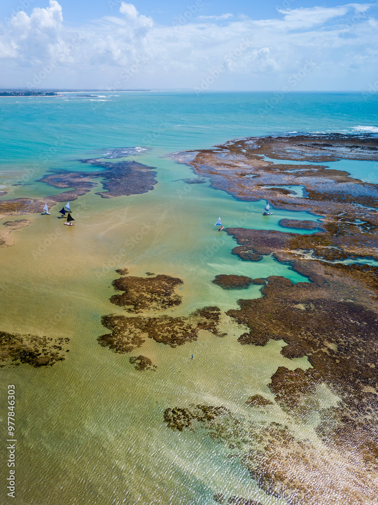 Ocean View At Port Of Chickens Beach Pernambuco Brazil. Maritime Port Of Chickens Beach Pernambuco. Paradise Landscape Leisure Beauty. Paradise Seaside Leisure Watercolor Coast. Porto de Galinhas.