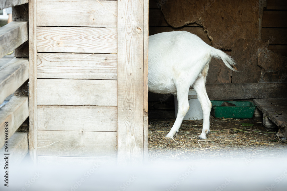 funny animal theme concept picture of goat ass tail and hooves farmland rustic space