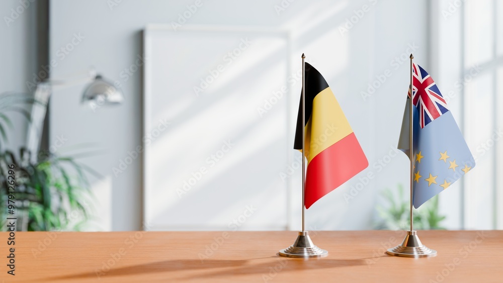 FLAGS OF CHAD AND TUVALU ON TABLE