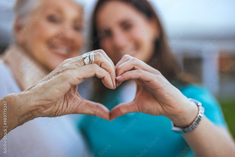 Elderly Woman and Caregiver Forming Heart Shape with Hands