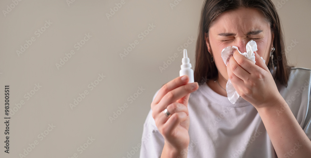 Woman sneezing while covering her nose with a tissue, showcasing an allergic reaction.