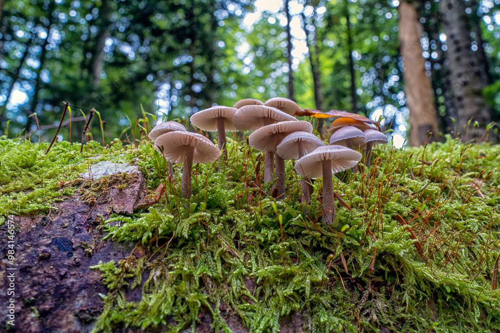 Mycène pur, champignons, appelé le bonnet lilas