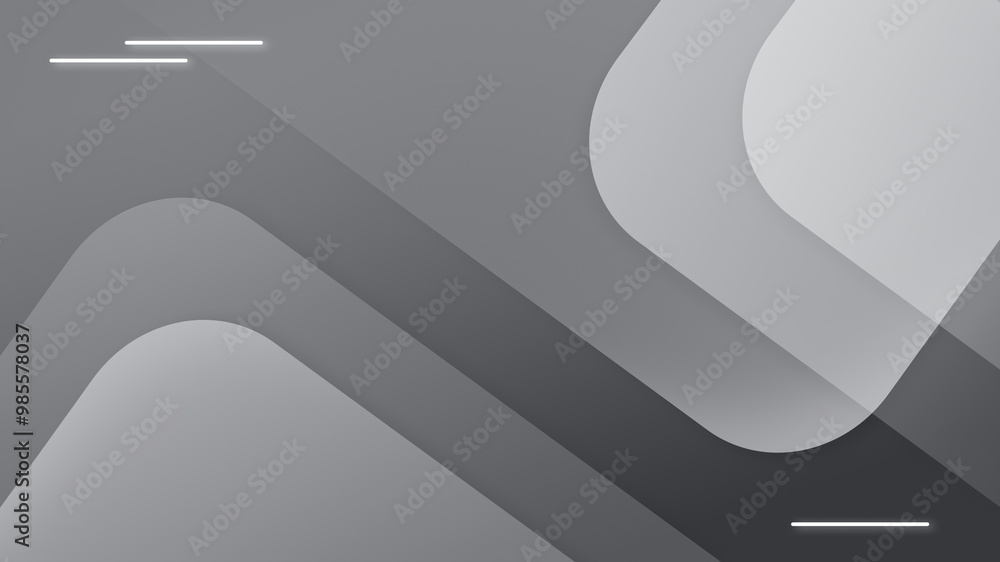 Layered and transparent geometric shapes on gray background in black and white. Abstract high resolution full frame modern template with copy space.