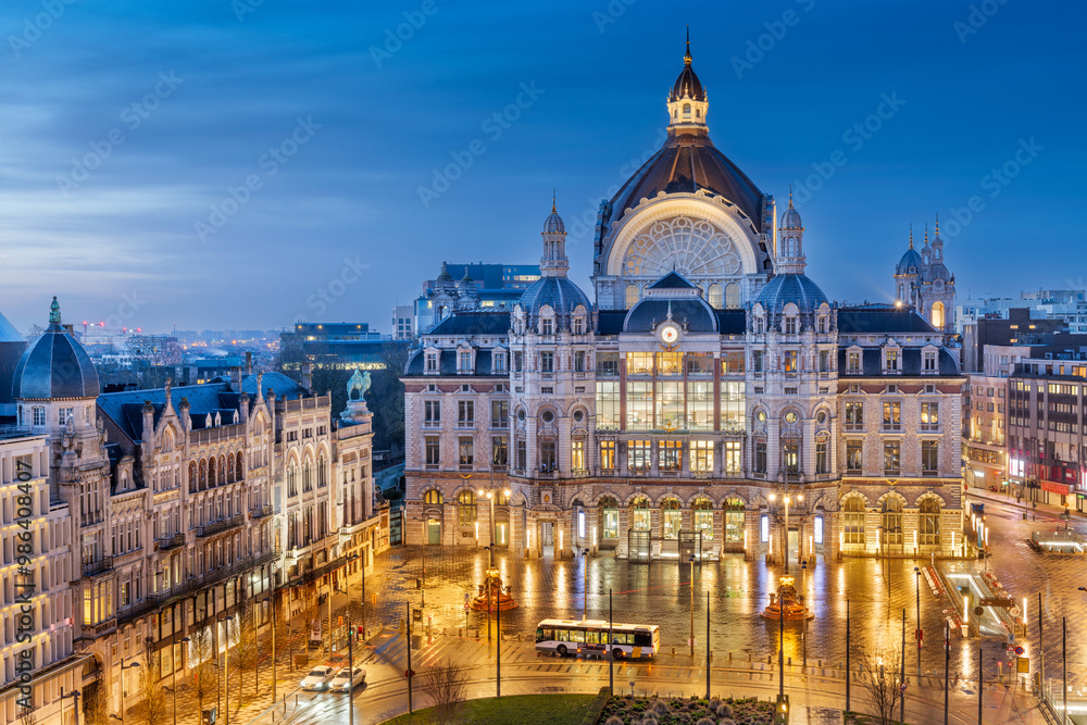 Antwerp, Belgium cityscape at Centraal Railway Station