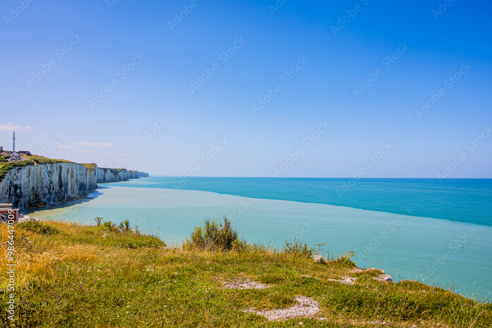 Vue sur l'océan et la plage du haut des falaises de Ault