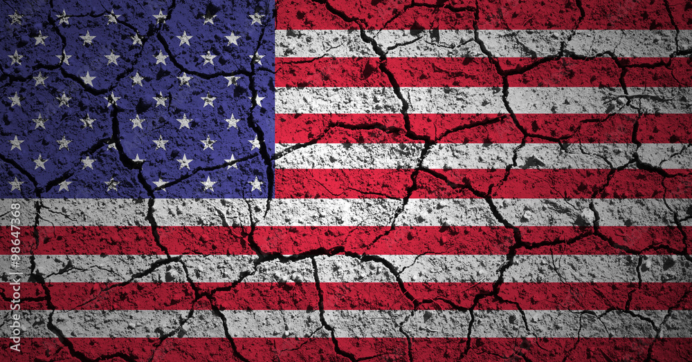 Aged old textured USA flag. Grunge cracked soil effect used.