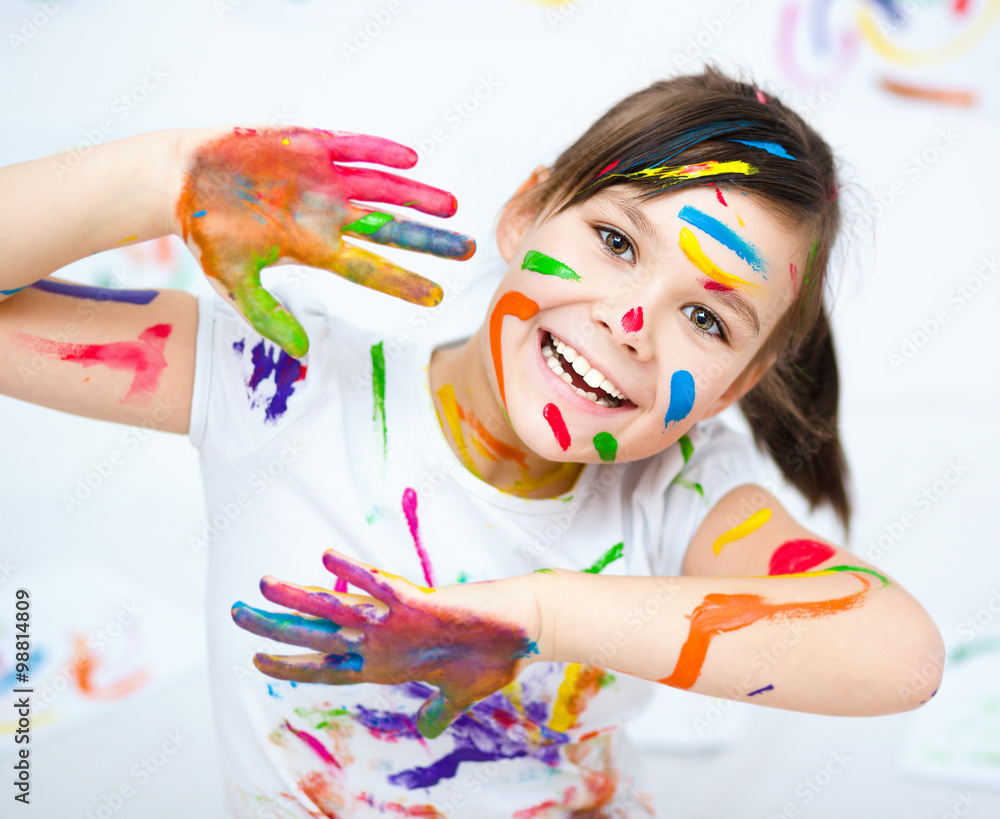 Cute girl playing with paints