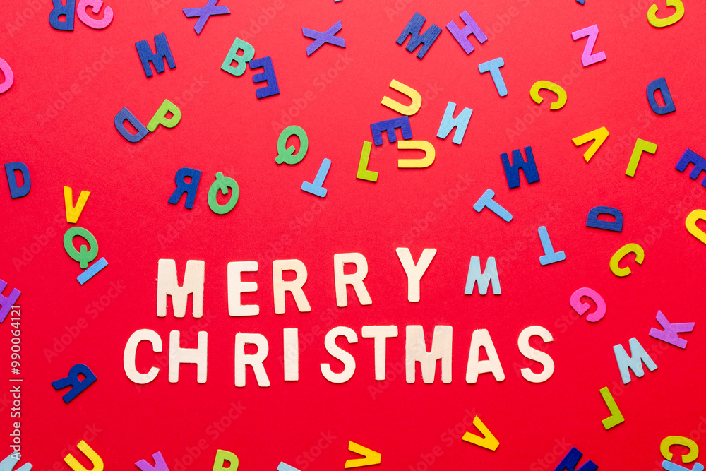 horizontal composition with the words Merry christmas, red background