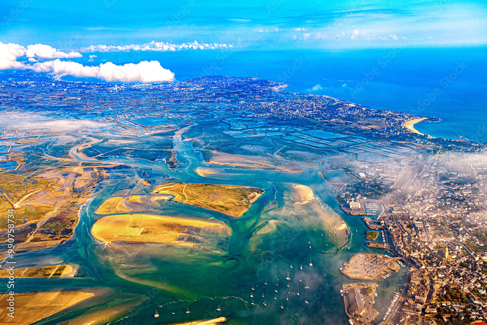 atlantic ocean in loire atlantic and loire river saint nazaire estuary aerial view