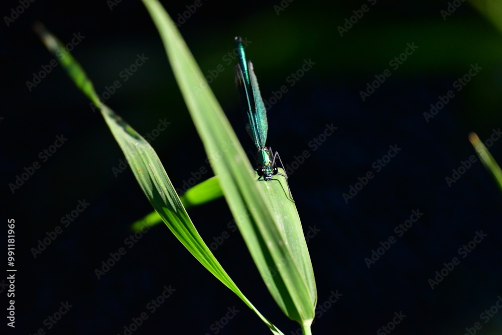 Damselfly on a green grass, Kilkenny, Ireland
