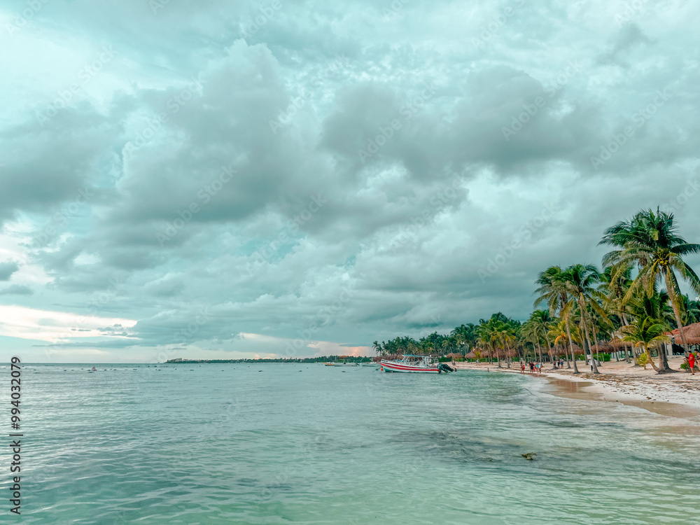 pacific beach with palm trees, turquoise waters, eco-friendly tourism