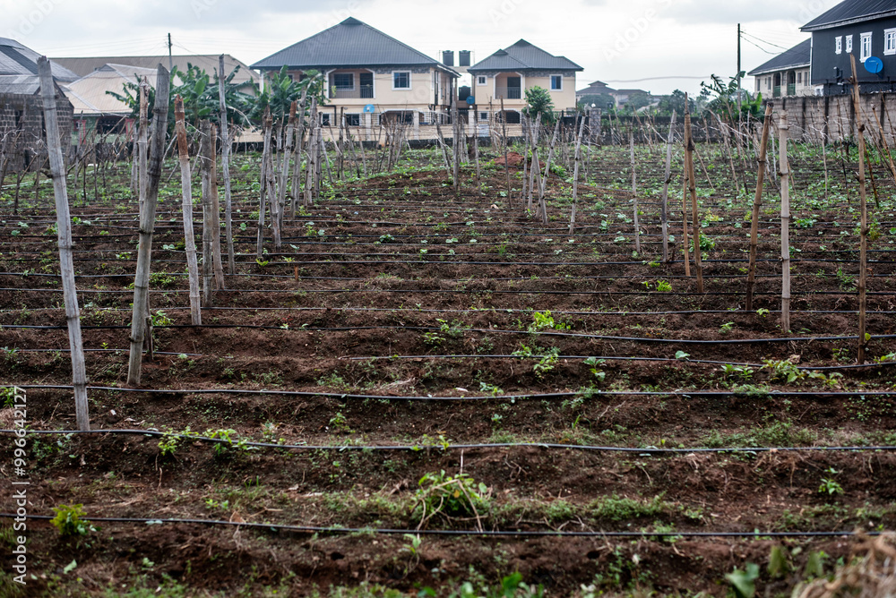 A farm plantation prepared for cucumber farming around a residential area in Sagamu, Ogun, Nigeria on August 26, 2024.