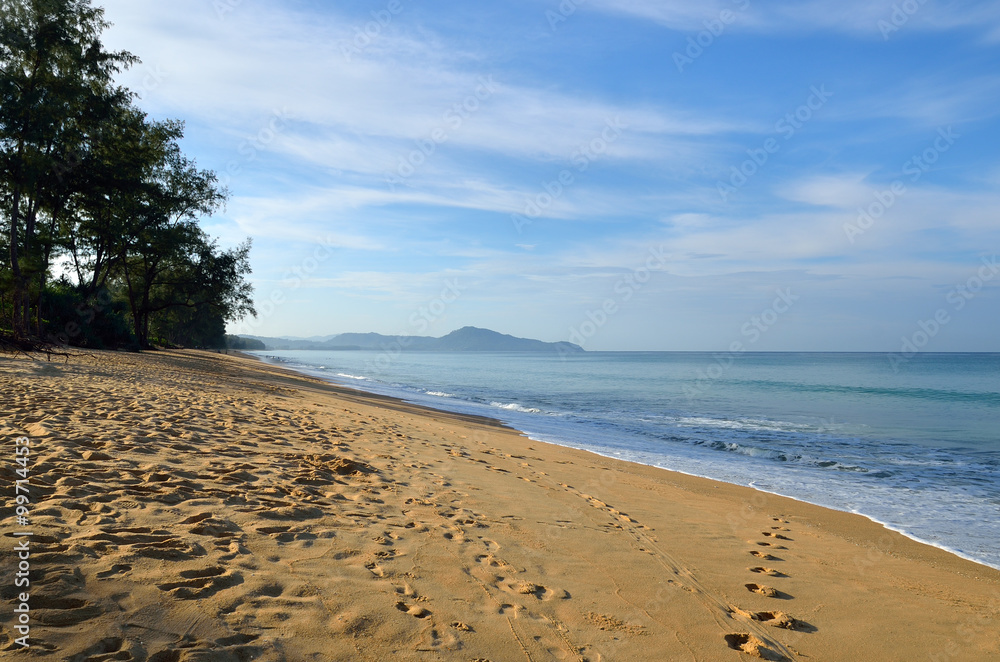 Beautiful beach with blue sky at Mai khao beach, Phuket, Thailand..
