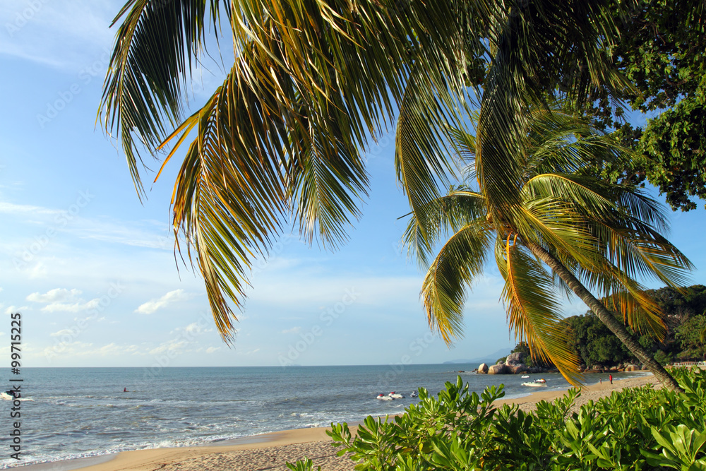 Sandy beach in Batu Ferringhi, Penang Island, Malaysia..
