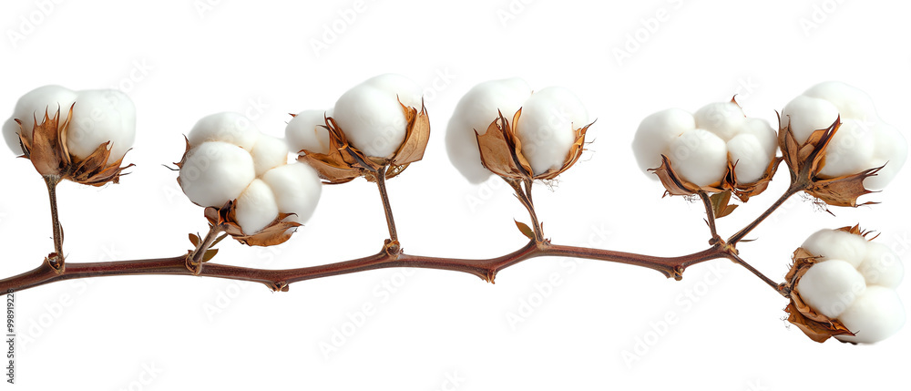 Beautiful cotton branch showcasing fluffy, white cotton bolls. Perfect for textile, agriculture, or organic themes in photography.